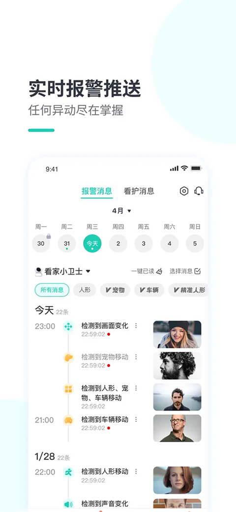 - 运动识别检测,离家模式下的自动推送移动画面到手机!