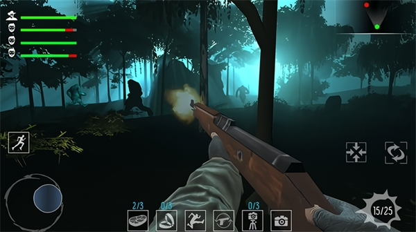 大脚怪狩猎多人联机中文版游戏的整体氛围是一种黑暗的基调,这样一来无疑很好的提升了游戏的未知性、可挑战性。玩家在这里需要迎战凶猛的大脚怪,可以合理设置陷阱,然后再对其一枪爆头。同时,玩家还需要合理利用医疗包,这样才能够提升自己的存活率。此外,该游戏还拥有多人联机模式,玩家之间可以合作战斗,让战斗过程变得更加刺激。
