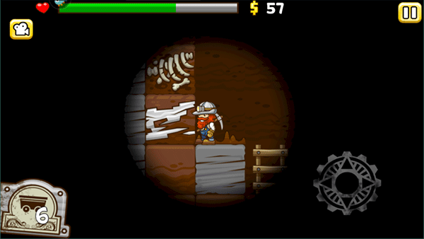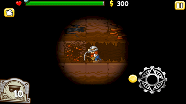 2、进入矿洞后,屏幕会变黑,你只能看到自己的位置,使用操纵杆移动或者挖掘石头;