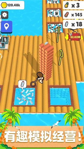 1、随着游戏的进行,木筏图纸将逐步解锁,玩家可以打造木筏,出海探险,探索更多的海岛以补充资源。
