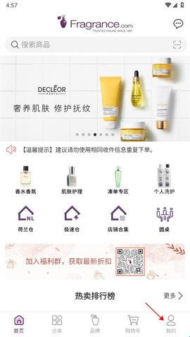 1、下载进入fragrancenet app,当我们买了商品后,点击右下角"我的"。