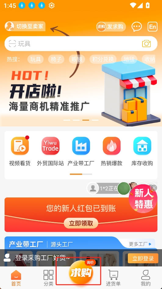 2.进入到主页后,点击求购: