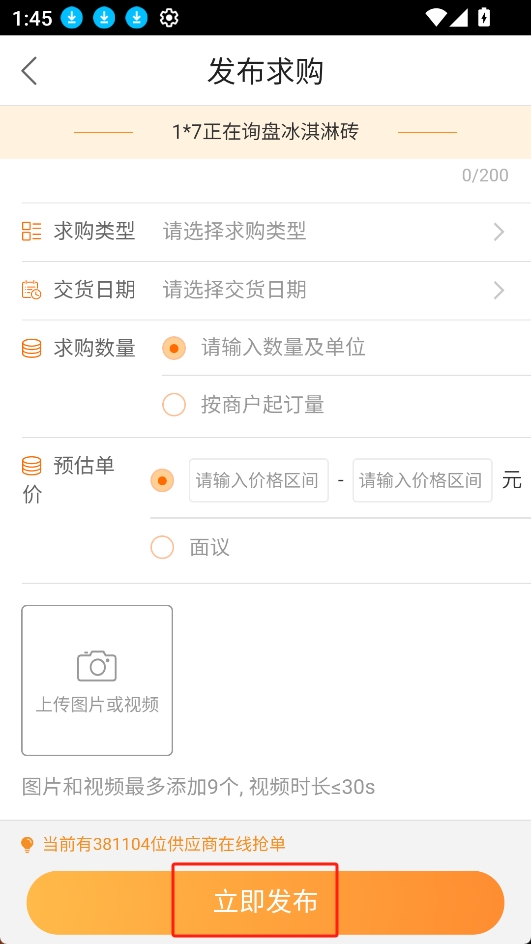 1.发布采购内容,匹配到供应商快速响应报价,提高交易效率;