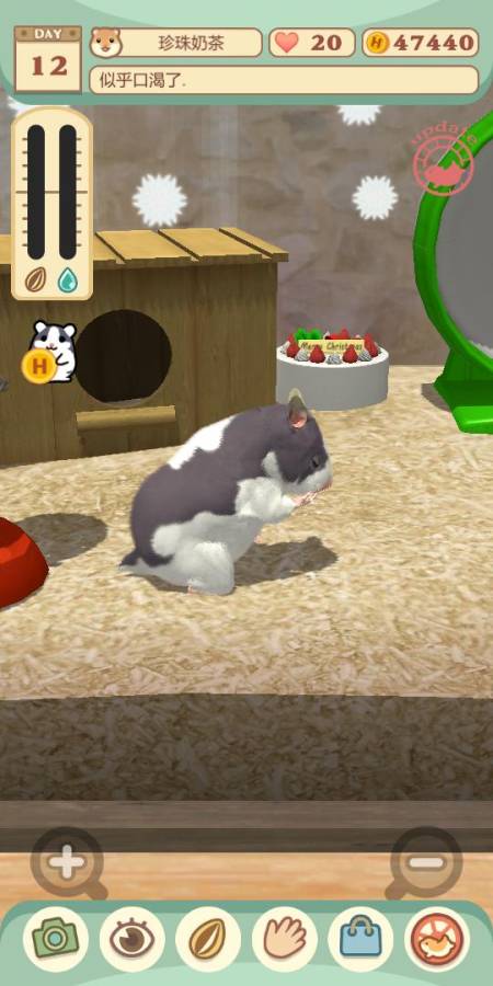 3、触摸笼子里的仓鼠两次就可以互相接触了,并且还可以获得硬币和亲密度。
