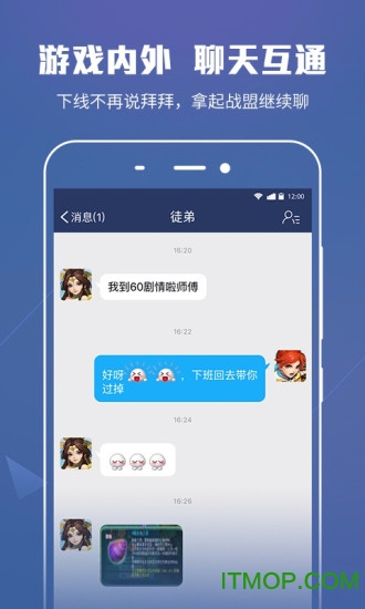 随时随地与游戏好友和帮派聊天,每时每刻关注帮派情况,感受移动IM的便利!