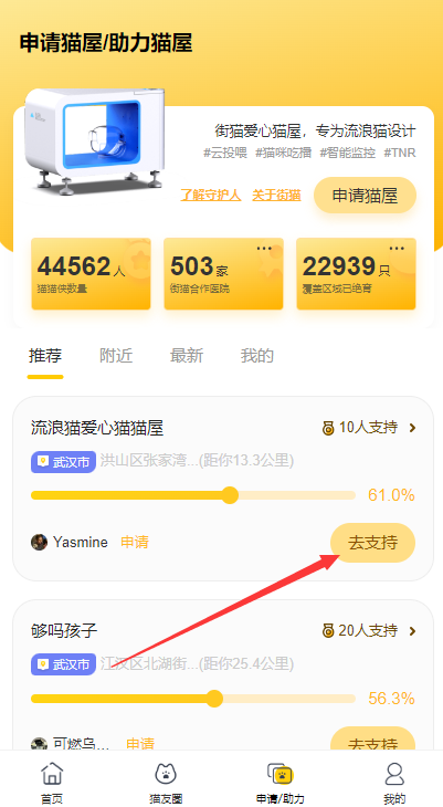 要在街猫APP中查看附近的猫屋,您可以按照以下步骤操作: