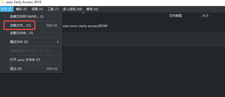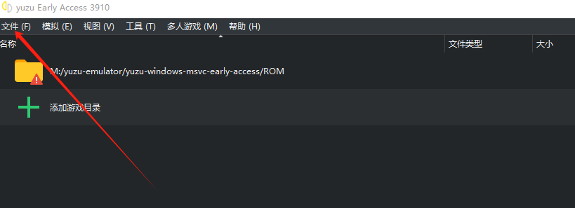 3、进入到yuzu模拟器界面之后,点击文件