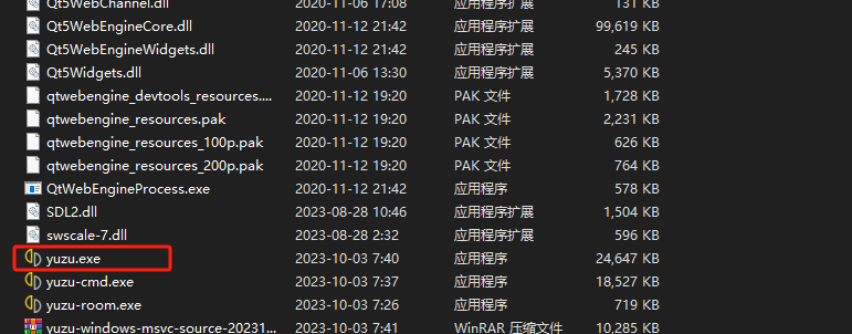 2、点击运行“yuzu.exe”