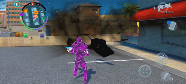 第一个任务末段是在公路上被警察的汽车和飞机追,点击目标可自动瞄准,然后开火便可摧毁对手。