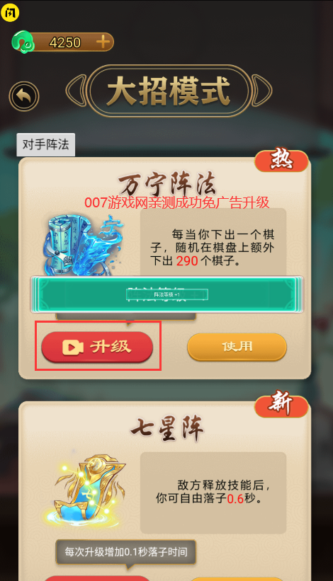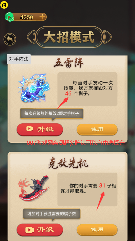 1、大招模式:有趣酷炫的阵法包括了《万宁阵法》、《绝户阵》、《困龙阵》、《毒杀阵》、《血狱影杀阵》、《五雷阵》、《八卦阵》、《分裂阵》、《四方阵》、《梅花阵》、《克敌先机》;