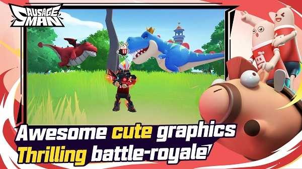 sausage man是卡通吃鸡游戏香肠派对的国际服版本,相较于和平精英的写实风格,这款游戏更加偏向恶搞与整活。sausage man没有采用真实的角色形象与场景搭建,而是采用了一位位贱萌的小香肠作为主角,小香肠可以在游戏中做奔跑、扭动等动作,看上去令人不禁发笑。除此之外,sausage man的场景是非常棒的卡通风格,看上去就没有太大的压力,可以让玩家们玩的很轻松。