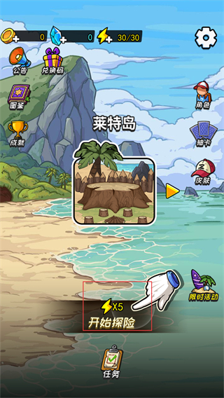 2、进入荒岛后点击开始探险按钮,派遣角色前往荒岛的不同区域进行探索,在探索过程中会遇到各种事件和物资。
