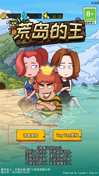 1、玩家下载游戏之后在游戏主界面,选择游客登陆的登陆方式,即可进入荒岛场景,开启在荒岛的生存冒险。