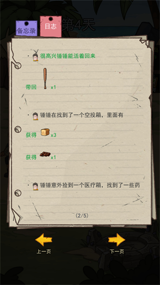 3、在探索过程中会触发不同的事件,这些事件会被记录在日志中点击查看日志,可以了解探险过程中的收获,回顾生存历程。