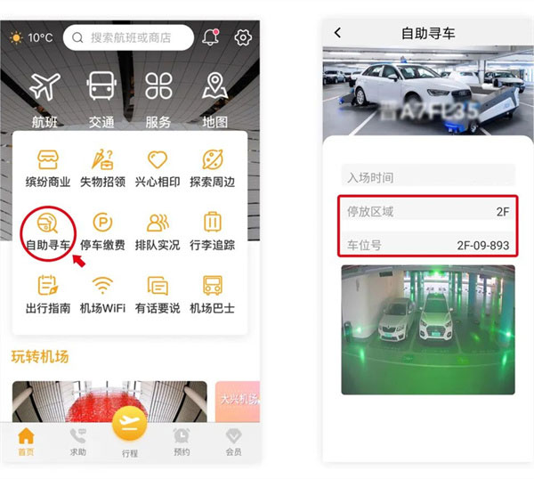 进入"自助寻车",输入相关信息可查看停车位置
