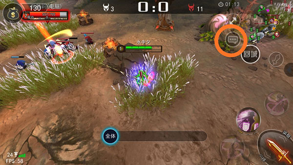 在小地图旁边有一个消息图标,点击后可以弹出聊天界面,默认为全体。