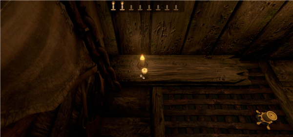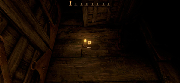 点燃完第3根蜡烛后往左直走,然后跳跃到最左边的木箱上,点燃第4根蜡烛。这个周围有4个小蜡烛的大蜡烛不计入点亮的蜡烛数,在这个大蜡烛的左上角,是第5根蜡烛。