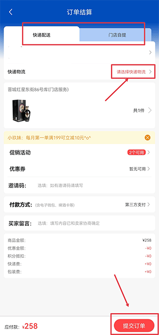 5、配送时可以选择闪送板块,系统将快速的为你匹配附近门店极速配送上门