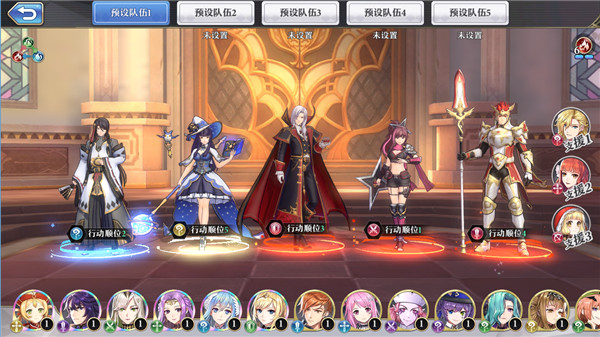 每次出战时,有5个上阵位和3个支援位。阵容整体搭配思路是“5+3” ,即所有位置都占满。