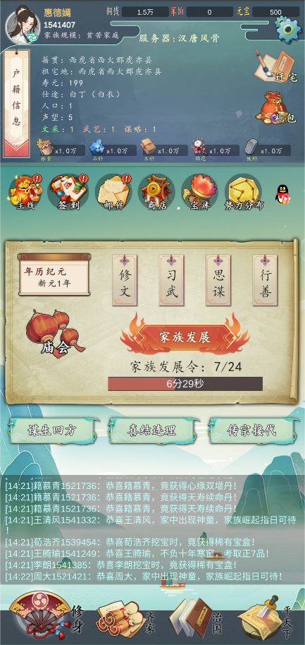 4.分工明确,文采出众者入仕,至少20文采方有声望加成(族长除外,可使用丹药提升)。