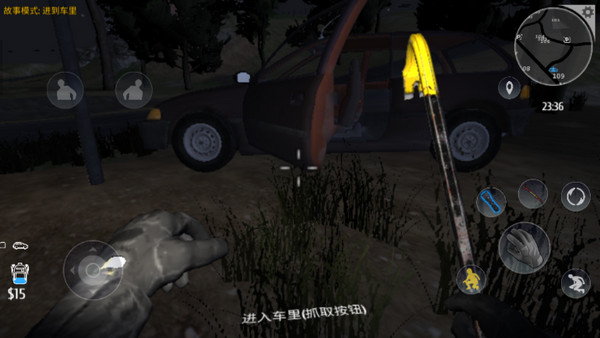 4、然后就可以长按便携栏,把背包里的撬棍拿到手上用了。