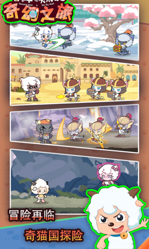 另外在这里你将与动画中的喜羊羊。美羊羊。沸羊羊。村长。以及总是失败的灰太狼等人物进行冒险,游戏主要以关卡制玩法为核心,玩家将选择一名角色进行挑战,其中每个角色都有不同的属性技能。