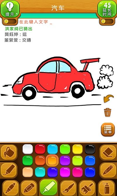 6.轮到你画图的时候,也是有提示的,在下面那里你可以选择画笔工具,进行画画,就要其他玩家回答最终答案了。