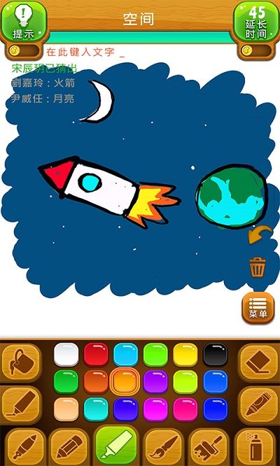 4.进入游戏之后,别的玩家先画画,在画板上面有提示的,你看他画的是什么,在右下角,输入文字猜对就行了,猜不中也没啥的。