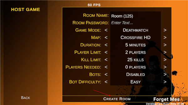 3、然后我们可以在这里设定房间的相关信息,例如房间名地图之类,设置完毕后点下面的Create Room创建房间