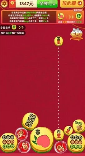 《合合有宝赚钱游戏》是一款轻松解压又很休闲的合成闯关类型的手机游戏!在游戏里面通过不断下落的物品,合成以后,你们是可以获得很多的奖励的,游戏整体玩起来是很轻松很有意思的!合合有宝app官方版结合了2048合成玩法与赚钱元素的休闲益智游戏,具有红包奖励机制、离线挂机收益、精美画面与音效等特点。这款游戏既有趣又能赚钱,非常适合广大玩家进行娱乐和放松。