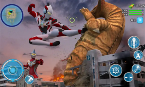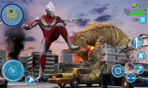 1、你在游戏中只需要简单的操控屏幕就可以让你得奥特曼放出各种大招技能。
