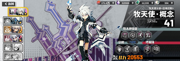 主角天使是一定要搞明白的机制,九个格子该角色独占一格,它的血量是最为重要的东西,想要获取满星的奖励最好将它的血量保证在50%以上,刚开始是只有概念这个角色的,技能也就是横扫没啥伤害,觉醒之后可以释放分身,进阶很快,六星战神角色,打开终端可以看到除了它以外还有六个其他样式的角色可以选择,解锁的方式是完成任务和精英关卡宝箱获取奖励之后解锁,满足条件之后可以使用元质觉醒技能,然后它们共享光环的效果,也就是除了进阶和觉醒的差异基本上在属性没有差距,所以在前两个条件差不多的时候可以随意改变自己的天使,并不会影响战力。