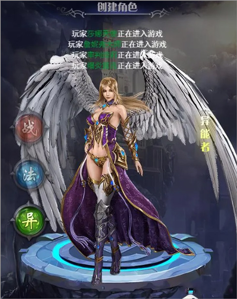 进入游戏前,目前共有三个职业可供选择,每个职业属性和技能侧重不一样,一旦选定,之后不能修改。