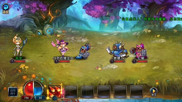 5、开始战斗:接受新手教程,组建队伍,使用下方技能攻击敌人,或选择自动战斗模式。