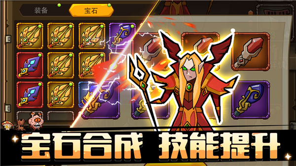 2、通过战斗中升级技能达到满屏清怪的爽快感,并通过宝石与装备的不同组合,具有丰富的策略性和可玩性。