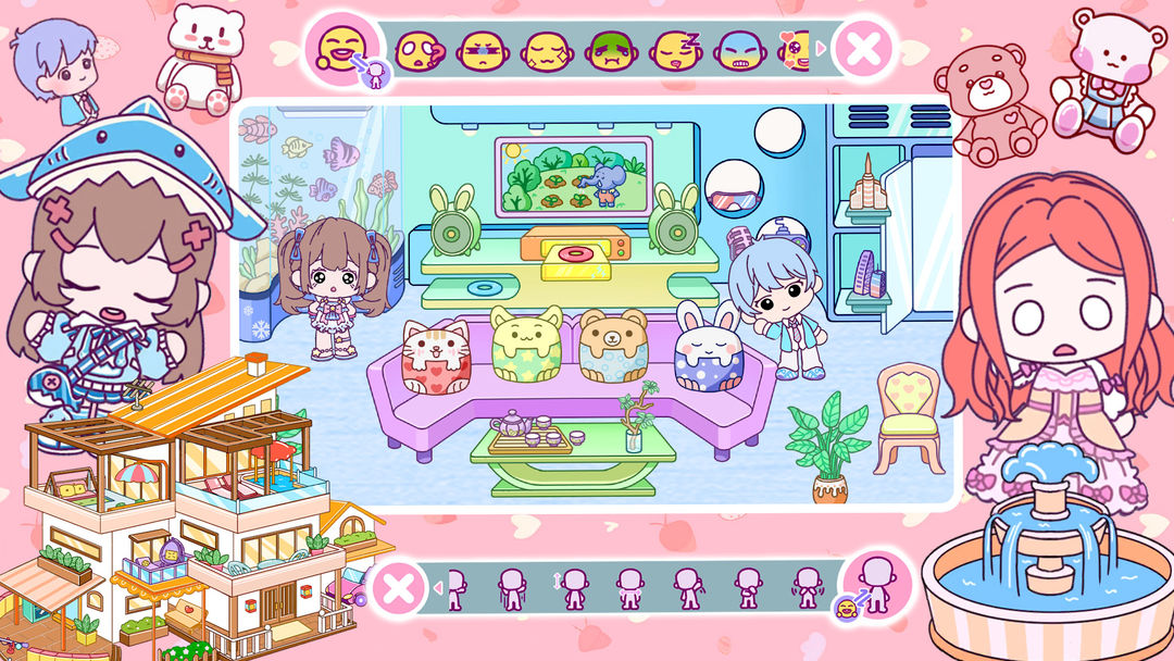公寓:一起来过家家,假装是父母,照顾蹒跚学步的孩子,在我的家,你可以装扮你的家庭成员,为他们安排各种日常活动:做饭、和姐妹玩耍、洗澡、讲睡前故事等等!