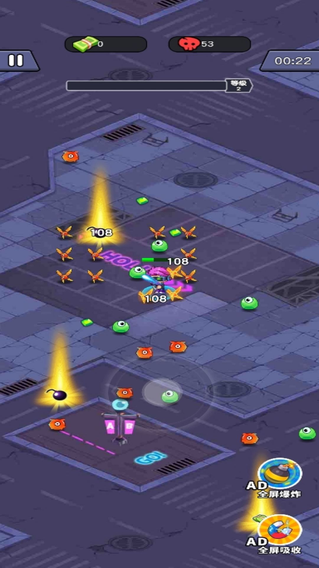 2、进入关卡后滑动摇杆可以操控角色移动。