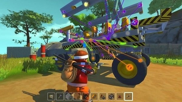 3.可交互零件:所有的可交互零件都有特殊的功能,包括移动,旋转,驾驶,飞行等,可交互零件可以做任何事情,包括汽油发动机,也可以做一个好笑的收音机,物品栏可交互零件的下方有一条橙色线条。