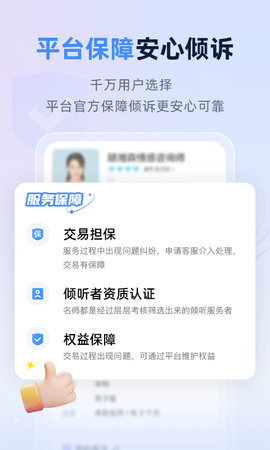 3、平台保障 倾听者经过平台严格的审核认证,服务质量有保障;