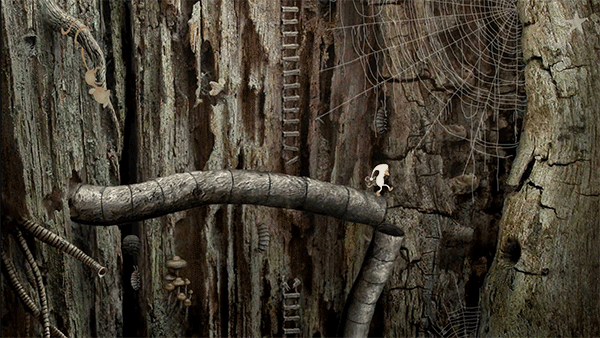 1、点击左边树缝中的球,球掉下虫子爬上去。虫子经过左边动物旁边时,立即点击动物,它会吃掉虫子并吐出骨头(?)。点击小人向右走,管子断,飞出苍蝇,点击苍蝇。点击小人,苍蝇飞去被蜘蛛丝包住。点击过关。