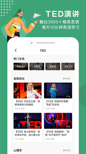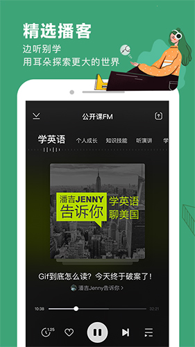 TED最新演讲、精品剧集纪录片尽在眼前,国内外名校公开课、泛知识视频、精选播客频道,不同形式的知识内容,配合你不同学习阶段的需求,无论是在家、在深夜、在路上,公开课都能给你提供合适的使用场景!