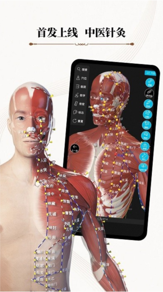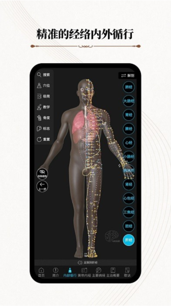 解剖和经络穴位随意切换,穴位与骨骼,动静脉,淋巴,器官,神经一目了然;