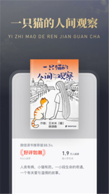 微信读书,一款超棒的移动阅读应用。海量书籍资源,涵盖小说、传记、社科等多领域,满足多样阅读需求。社交互动特色鲜明,能和好友交流读书心得、比拼阅读时长。支持多种阅读模式,护眼模式贴心呵护双眼,语音朗读让你解放双手。还能通过阅读获取无限卡免费看书。界面简洁易用,操作流畅。无论通勤、睡前,随时随地开启阅读之旅,快来享受沉浸式阅读体验。
