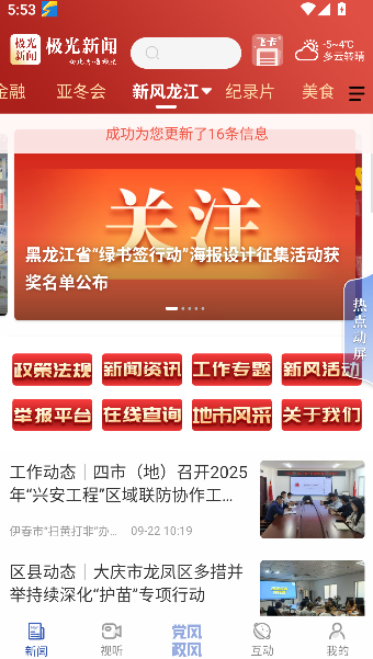 2、成功登录后,在首界面可以看到有关黑龙江的所有新闻。