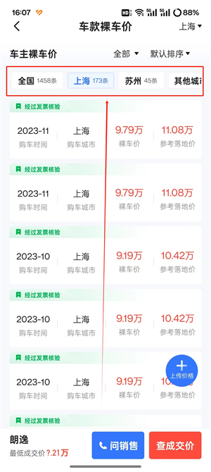 5、下滑页面还可以看到全国各地该车型的裸车价信息,方便大家参考。