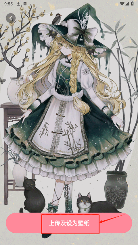 接着进入手机相册,在相册内选择好壁纸并点击上传及设为壁纸。