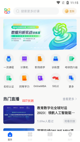 提供系列直播课程和4000多门丰富课程,涵盖计算机编程、人工智能、商科、外语、日语、英语等广泛科目。