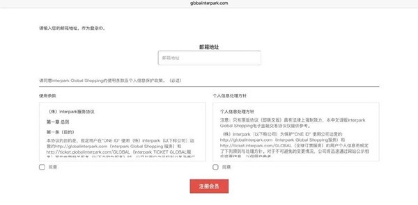 5、填写邮箱이메일并且点击下⽅的同意,输⼊密码进⾏注册。