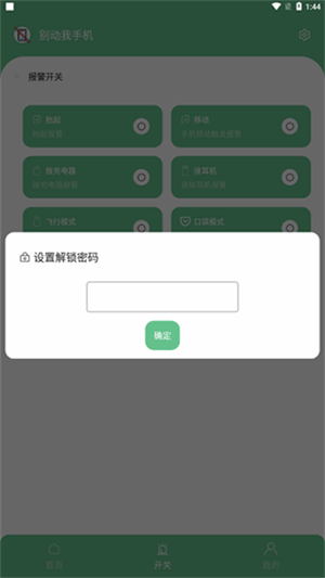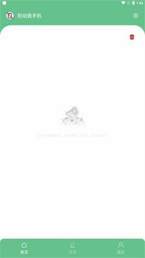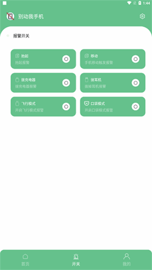 1、下载安装好别动我手机app,进入首页你可以点击右上角的设置,进行触发后的报警方式。