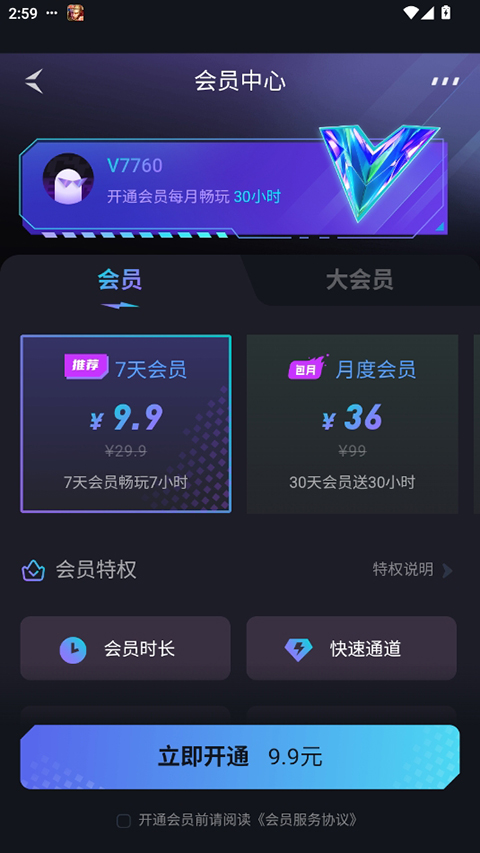 4、开通会员每月畅玩30小时,大会员可每月无限时长畅玩哦。